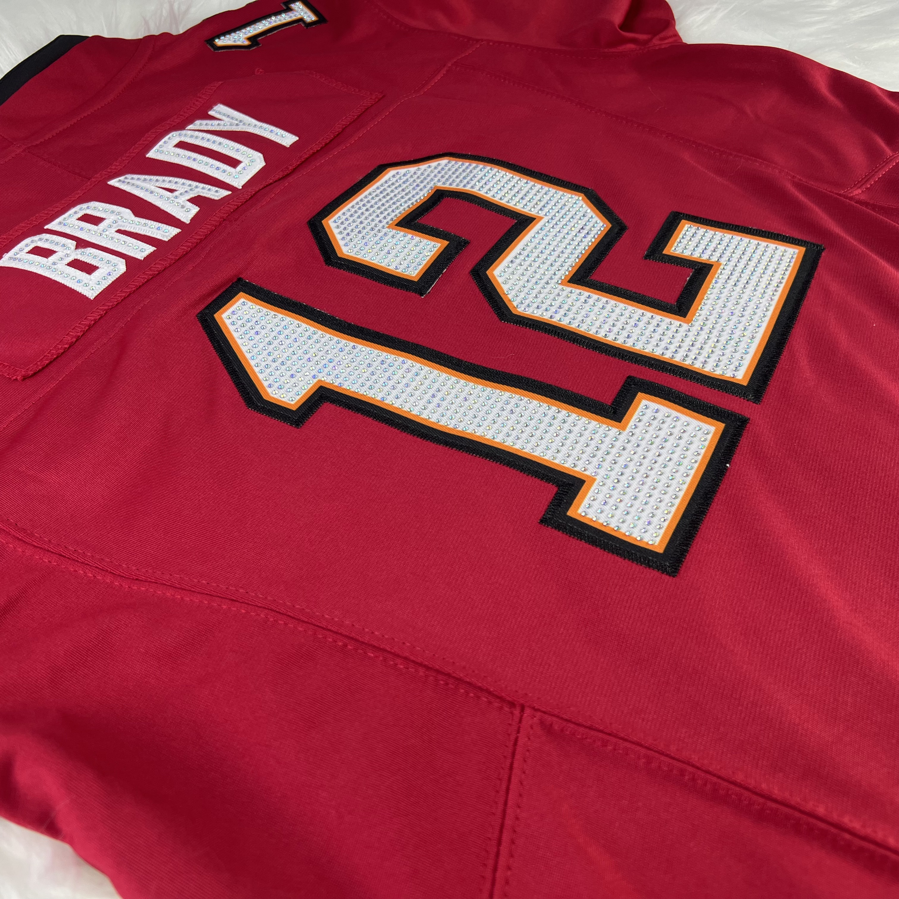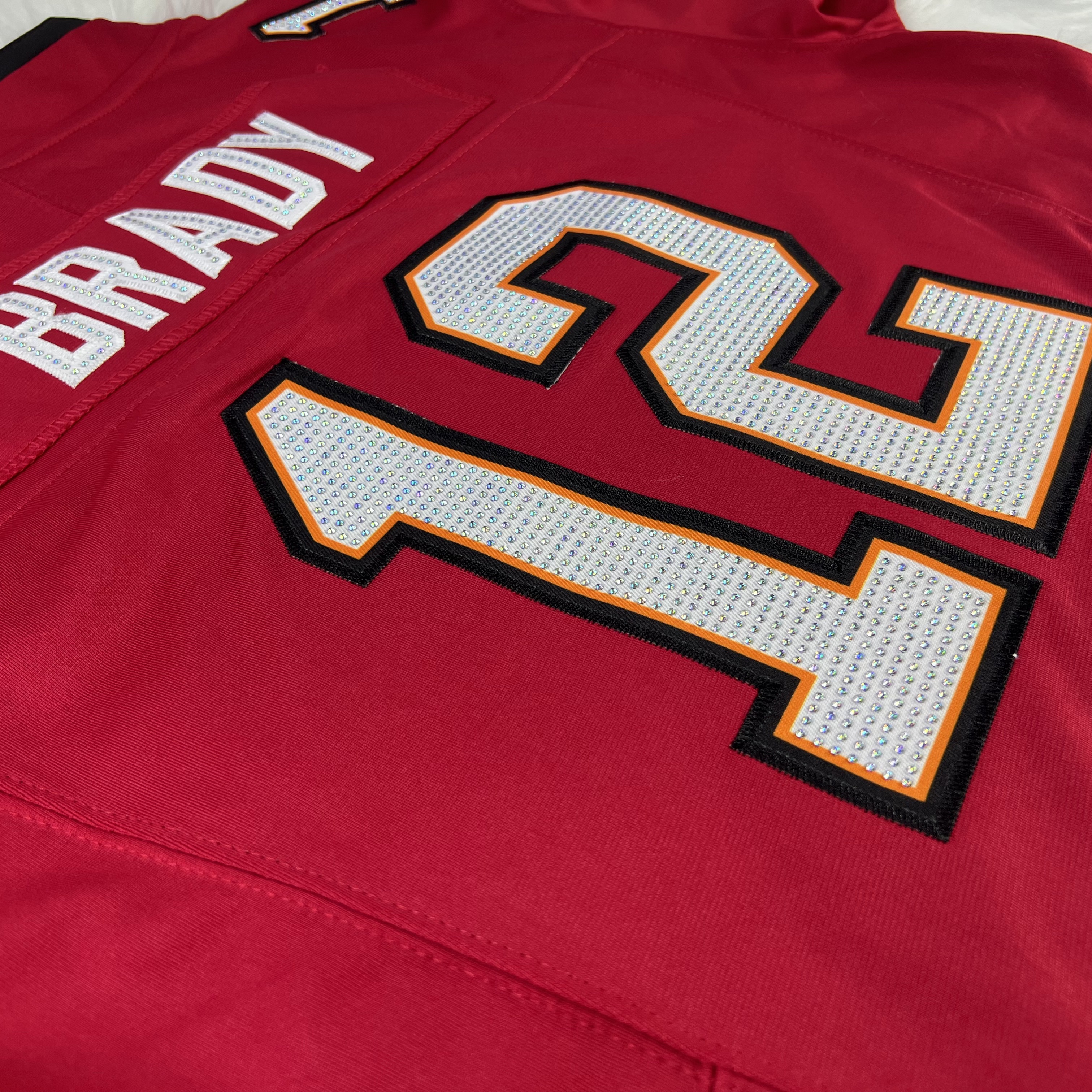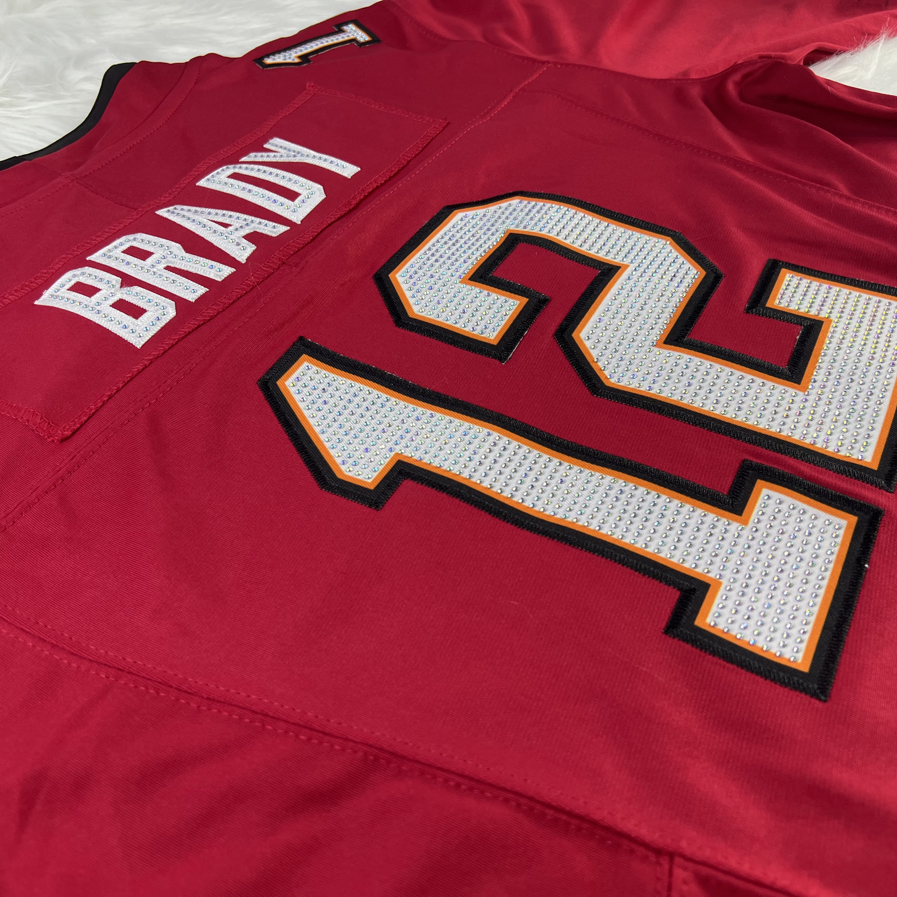 Detail• Limited-edition red Nike Vapor jersey• Decked out in diamond studs for true collectors• Honors Tom Brady’s legacy with bold style• Tampa Bay Buccaneers pride, leveled up• For fans who rep their team with flair